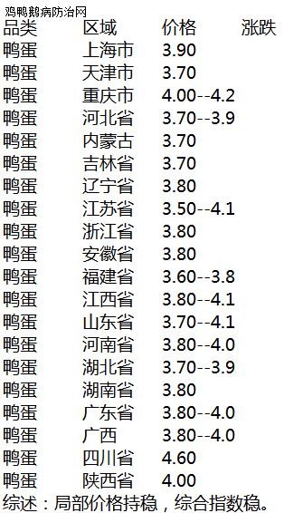 2020年10月30日 全国鸭蛋价格稳定为主,部分地区蛋价下跌。