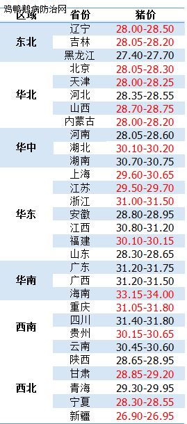 今日部分省份屠宰厂报价跌幅(元/公斤)情况:辽宁0.2、吉林0.2、黑龙江0.2、河北0.2、陕西0.2、山东0.4、湖北0.2-0.8、湖南0.2-0.4、江西0.2、江苏0.2-0.4、安徽0.4、四川0.1-0.4、重庆0.2-0.4、广东0.2、云南0.2、新疆0.5、甘肃0.5。