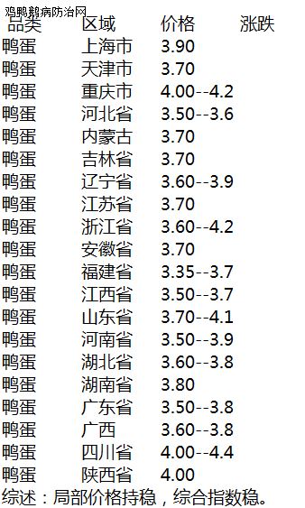今日浙江价格上调,销量稳定,销售行情稳定,价格依旧不稳,地区差异大,建议不养长天龄鸭,及时销售!深秋注意用驰骋芪贞颗粒+好得快预防感冒、浆膜炎,很有必要。