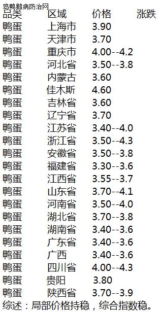 2020年12月4日 全国鸭蛋价格稳定为主,部分地区蛋价上涨