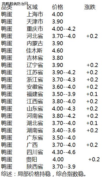 2020年12月12日 全国鸭蛋价格稳定为主,部分地区蛋价上涨