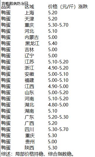 2020年1月9日 全国鸭蛋价格稳定为主,部分地区蛋价上涨