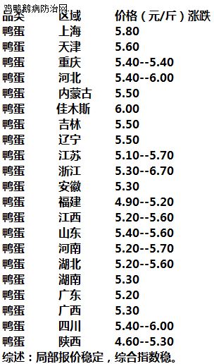 2020年2月10日 全国鸭蛋价格稳定为主、部分区域降价