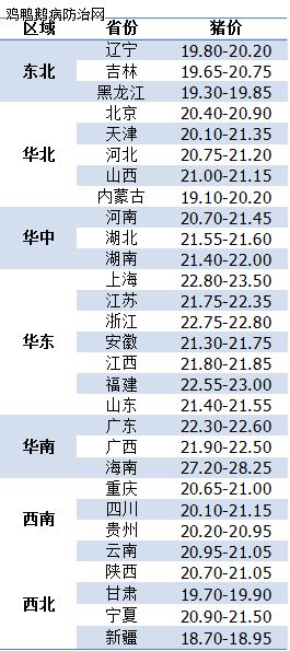 今日部分省份屠宰厂报价跌幅(元/公斤)情况:辽宁0.2-0.4、吉林0.2-0.4、黑龙江0.2-0.4、河北0.1-0.2、陕西0.3-0.6、山西0.2、河南0.2-0.5、山东0.2-0.4、湖北0.1-1、湖南0.4、江西0.2、江苏0.4-0.6、安徽0.2-0.4、四川0.2-0.5、重庆0.8、广东0.3、云南0.4、贵州2.4、新疆0.5、甘肃0.4。
