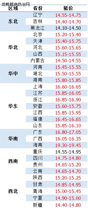 今日部分省份屠宰厂报价涨幅(元/公斤)情况:辽宁0.2-0.6、吉林0.2、黑龙江0.1-0.2、天津0.3、河北0.2-0.4、河南0.2-0.4、山东0.2-0.4、湖北0.1-0.4、湖南0.4、江苏0.2-0.5、安徽0.2-0.6、福建0.2、四川0.1-0.6、广东0.2、云南0.3、新疆0.5、甘肃0.2-0.4。