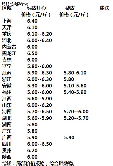 广东:圆黄蛋 5.5-6.5 散黄蛋 0.5-0.8