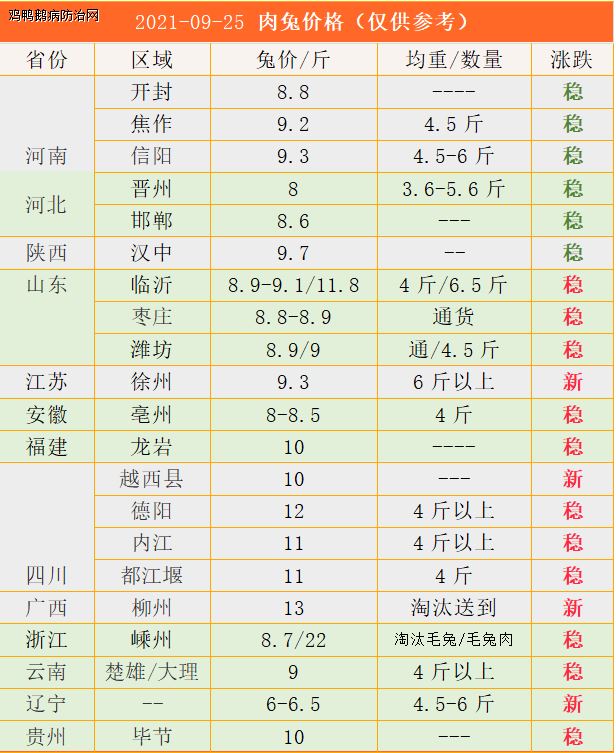 注:兔价涨跌是基于上个报价周期对比,报价时效性高,仅供市场参考。