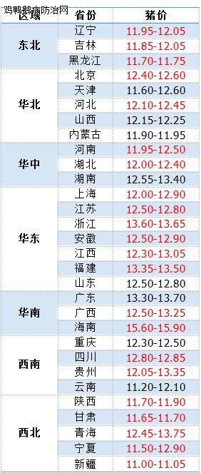 今日部分省份屠宰厂报价涨幅(元/kg)情况:辽宁0.2、内蒙古0.2、河北0.1-0.2、河南0.1、山东0.4、湖北0.1。