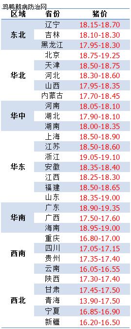 今日部分省份屠宰厂报价涨幅(元/公斤)情况:辽宁0.2-1.2、吉林0.4-1、黑龙江0.2-1.4、河北0.7-1.6、陕西1-1.6、山西1-1.2、河南0.5-2、山东0.4-1.5、湖北0.2-1.3、湖南0.2-1.2、江苏0.8-1.2、浙江1.2-2、安徽0.4-1.2、福建1.4-1.6、四川0.6-2.2、重庆0.2-1、广东0.4-0.6、云南0.5、贵州0.6、新疆0.4-2、甘肃1.2-1.8。