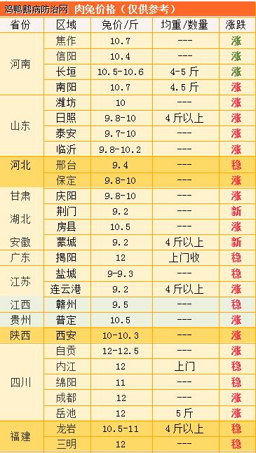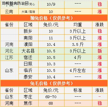 注:兔价涨跌是基于上个报价周期对比,报价时效性高,仅供市场参考。
