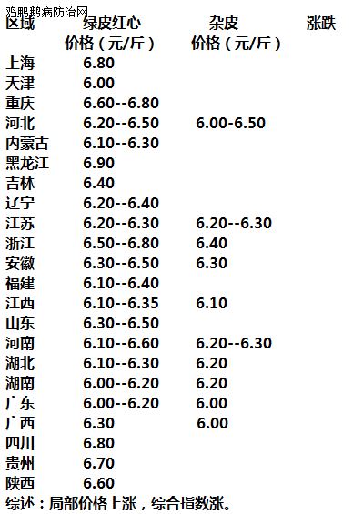 中兽医网分享:7月30日华南部分地区水禽价格如下