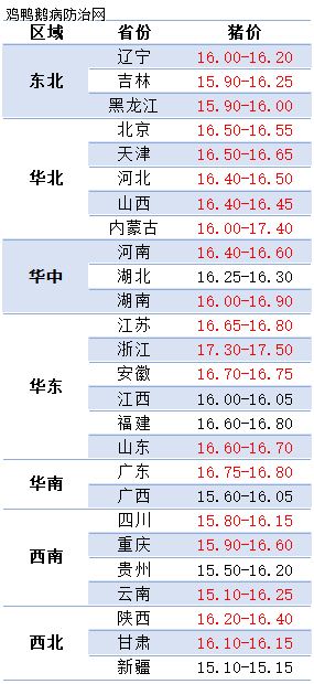 今日部分省份屠宰厂报价跌幅(元/kg)情况:辽宁0.2、吉林0.2-0.4、黑龙江0.2-0.6、河北0.2-0.3、山西0.1-0.4、内蒙0.4、江苏0.1-0.2、安徽0.2、江西0.2、山东0.2-0.4、河南0.2-0.4、湖北0.1-0.2、广东0.2、湖南0.02-0.2、福建0.2、四川0.1-0.3、新疆0.1-0.3、陕西0.15-0.2、甘肃0.2、云南0.1。