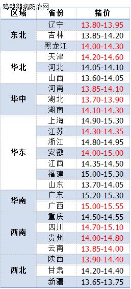 今日部分省份屠宰厂报价涨幅(元/kg)情况:辽宁0.2、吉林0.2-0.4、黑龙江0.2-0.4、天津0.1-0.4、河北0.2-0.4、山西0.2-0.3、内蒙0.2、江苏0.12-0.4、安徽0.2-0.8、山东0.2-0.4、河南0.2-1.0、湖北0.5-0.6、湖南0.1-0.4、福建0.3、四川0.05、新疆0.2、陕西0.2-0.3;