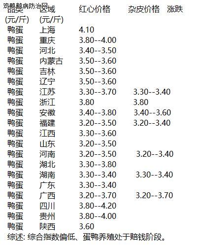 声明:以上鸭蛋价格为当地主流收购价格,以质论价,蛋价仅供参考,不作为投资和交易依据,与实际价格有出入请留言。
