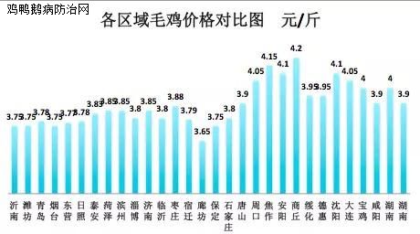 【鸡鸭鹅病防治网家禽信息简报】3月2日各区域主流厂家白羽肉毛鸡行情信息:山东沂南3.7-3.75跌0.02,潍坊3.7-3.75跌0.05,青岛3.75-3.78稳,烟台3.68-3.75跌0.05,东营3.72-3.77跌0.03,曰照3.72-3.78跌0.02,,枣庄3.82-3.88跌0.03,泰安3.78-3.83,菏泽3.78-3.85稳,滨州3.8-3.85稳,淄博3.75-3.8涨0.02,济南3.8-3.85稳,临沂3.75- 3.8稳;江苏宿迁3.75-3.79稳;河北廊坊3.6-3.65跌0.4,保定3.7-3.75跌0.5,石家庄3.7-3.8跌0.4,唐山3.8-3.9跌0.5,河南周口4.0-4.05跌0.15,焦作4.05-4.15跌0.2,安阳4.0-4.1跌0.25,商丘4.1-4.2跌0.12,黑龙江绥化3.95稳;吉林德惠3.95稳;辽宁沈阳4.1稳,大连405稳;陕西宝鸡4.0稳,咸阳3.9稳;湖南4.0涨0.1。