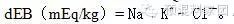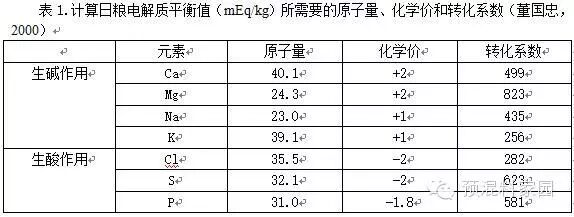 也可以简化:可以用日粮中Na、K、CL的百分含量直接乘以转化系数(表1)而得出各电解质对dEB的贡献值(mEq/kg),则dEB= 0.15×435+0.15×256-0.25×282 =33.15mEq/kg。
