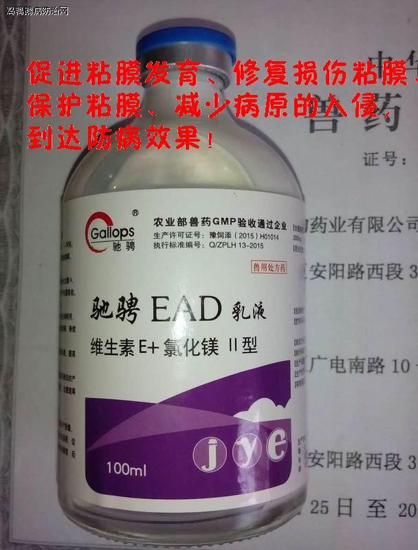 本公司驰骋EAD乳液除了含有鱼肝油外还有大量的维生素A和维生素E。鱼肝油可以快速的辅助机体修复受损的粘膜,维生素A可以促进细胞间质的生成从而增加粘膜表层细胞的质密性从而能够更有效的阻挡病原菌的入侵,维生素E是很好的抗氧化物质可以有效的阻止体内自由基对粘膜细胞的破坏从而维持粘膜的正常功能。