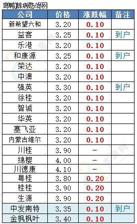 变化情况:明日全国鸭苗价格报价北方区继续上调0.10元/羽,两广区二次报价后实际上调0.20元/羽,西南区持稳。全国监测点区域平均报价3.29元/羽,较昨日上调0.11元/羽。