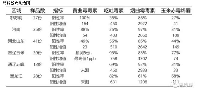 检测结果:主产区霉菌毒素污染情况见下表,单位ppb。