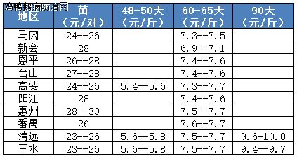 2017年1月6日 番/麻鸭苗价格监测(单位:元/羽):