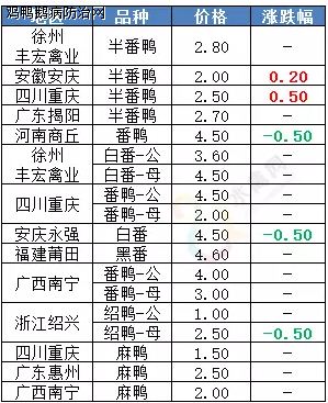 3月1日 番/麻鸭苗价格监测(单位:元/羽)