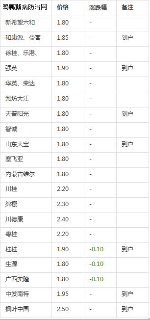 丽水、惠州、邯郸、徐州、河南豫东、豫北水禽疫病快讯:种鸭采食量不减(有些蛋鸭采食量明显下降),拉稀、产蛋量下降,薄蛋壳、沙壳蛋、小蛋等症状;魏老师建议用药治疗方案:驰骋芪贞颗粒+好得快+新力爽混合饮水,每天一次,连用5天;(5天后用养殖安拌料;驰骋钙+EAD100混合饮水,连用7天)预防方案:定期在饲料中添加0.75%养殖安+驰骋芪贞颗粒+EAD混合拌料,预防效果不错!