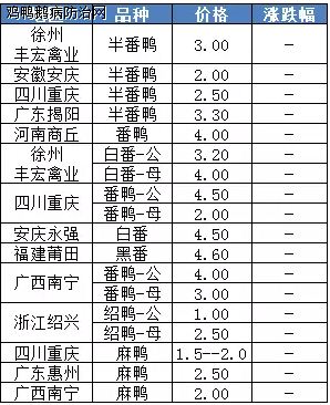 3月6日 番/麻鸭苗价格监测(单位:元/羽