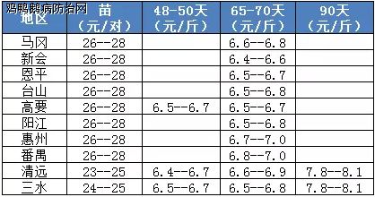 2017年3月6日 粤桂鹅苗、肉鹅价格监测: