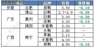 鸡鸭鹅病防治网 简评:明日全国鸭苗价格延续南跌北稳格局,北方区品牌苗厂开票报价暂稳于1.6元/羽,中小苗厂实发价格在1.35-1.55元/羽不等。目前北方地区天气已恢复晴好、气温快速回升,降雨降温主要集中在华南西南区域,昨天广西、贵州地区猛跌10℃。此次南方的降雨降温还将要维持三天左右的时间,不利于养殖户育雏,明天南苗低位下探,两广跌幅0.1-0.2元/羽不等,广西地区孵化厂家竞争激烈,价格跌至0.6元/羽左右。全国监测区域鸭苗成交均价1.48元/羽,较去年3月同期下跌1.93元/羽,跌幅56.6%。