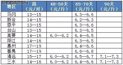 2017年3月16日 粤桂鹅苗、肉鹅价格监测: