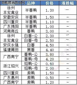 3月18日 番/麻鸭苗价格监测 单位:元/羽