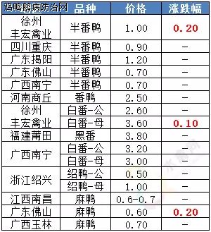 4月8日 番/麻鸭苗价格监测(单位:元)