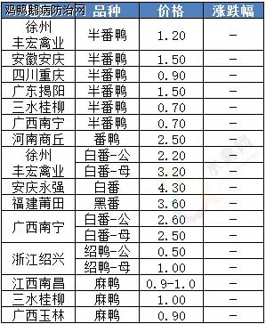 4月20日 番/麻鸭苗价格监测(单位:元)