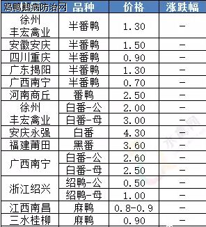 鸡鸭鹅病防治网消息,4月28日华南部分地区水禽、鸽价格如下: