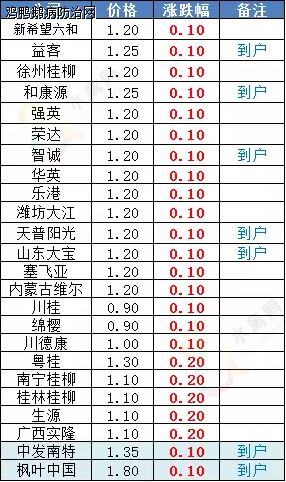 简评:全国鸭苗价格延续小涨、全线飘红。北方区苗价回落后孵化企业计划有所好转、小涨渐进,各品牌苗厂开票报价普遍上调0.1元/羽。南方活禽市场好转,五一期间全国天气晴好,上海、江西及两广等地活禽市场开始,交易大幅增加、量价齐升,成品大鸭价格迅速反弹,苗价顺势上涨,明天两广孵化企业报价上涨幅度在0.2元/羽左右。