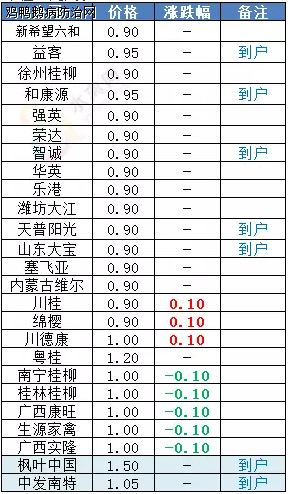 简评:鸭苗价格大部地区横盘暂稳、局地小幅涨跌调整。北方山东、河北等主产区的养殖环保整治、禁养限养区内的养殖场拆迁使业内信心遭到极大挫伤,前景堪忧、朝不保夕,养殖户补栏积极性下降,冷藏投放困难,目前北方主产区品牌苗厂开票报价暂稳于0.9元/羽一线;华南区域近期鸭苗价格震荡调整,明天西南苗价上涨0.1元/羽,广东地区报价暂稳,广西则下滑0.1元/羽。全国监测区域鸭苗成交均价0.92/羽,较去年5月同期下跌0.88元/羽,跌幅48.9%。