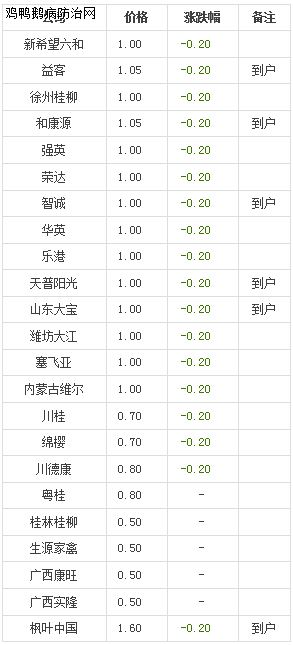 简评:全国主产区品牌苗厂报价北方区、西南区下调0.20元/羽,广东区、广西区持稳;全国监测点区域平均报价0.94元/羽,较昨日价格下降了0.17元/羽,较去年6月同期下跌0.36元/羽。市场分析:南苗北调影响较大,孵化场计划一般,报价下调,主要屠宰厂对8月中下旬产品销售情况预期相对较好,但价格预期持谨慎态度,当前投苗基本在8月开始出栏,基于对价格的不确定性,主要屠宰厂均加强了合同成本的管控,以平衡数量和屠宰效益;南方区调运后供需计划向好,但受近期暴雨天气影响,市场养殖户补栏情况一般,今日报价持稳。