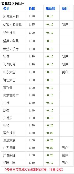 简评:明日全国主产区品牌苗厂报价北方区、西南区下调0.10元/羽,广西、广东区下调0.20元/羽;全国监测点区域平均报价1.82元/羽,较昨日价格下降了0.12元/羽,较去年7月同期下降了0.09元/羽。市场分析:南北方受暴雨天气和洪涝灾害影响,以及北方部分地区再度强化禁养措施等,造成养户主客观上补栏受阻,供需形势出现转折,苗厂报价连续下调。