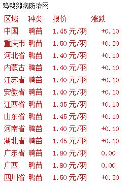 2017年7月16日 国内鸭苗价格[单位:元/羽