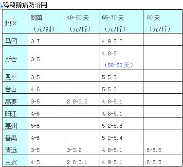 8月4日广东鹅苗价格全线反弹、小涨恢复,各地报价普遍上调0.5-1.0元/羽不等,主流成交价在3.0-4.0元/羽;