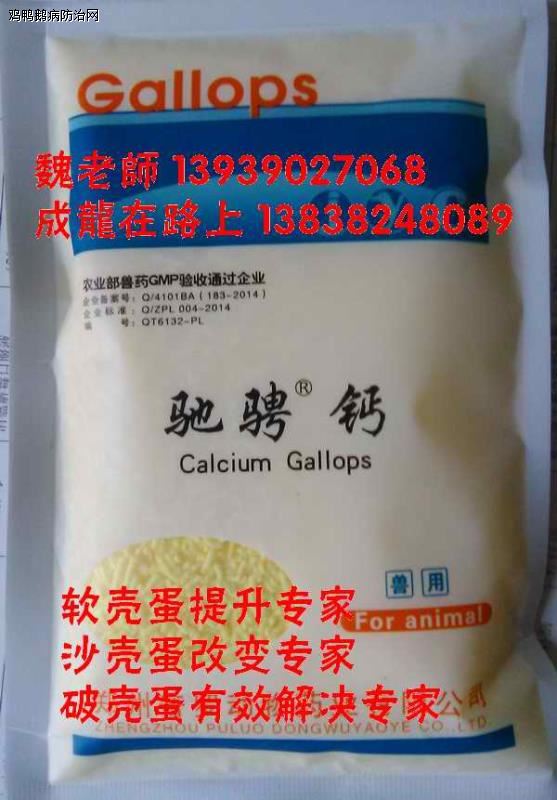 驰骋钙: 您身边的补钙专家,3天见效!1.有效预防“产蛋疲劳症”,即半夜突然发病,两腿僵直后伸,难产、瘫痪等症。2.快速改变蛋壳颜色,发红发亮,好看;3.增加蛋壳厚度,增重;4.减少薄壳蛋、软壳蛋,手触摸鸡蛋手感好,光滑、有质感,提高卖相--驰骋钙。www.jyebfz.com 鸡鸭鹅病防治网 魏老师用心推荐 13939-027-068 微信同步;成龙在路上推广分享 138-3824-8089.