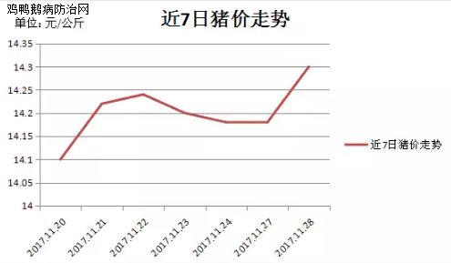 据鸡鸭鹅病防治监测,2017年11月29日全国外三元生猪均价为14.48元/公斤,较昨日上涨0.04元/公斤;仔猪均价为31.13元/公斤,较昨日下降0.02元/公斤;今日白条肉均价19.97元/公斤,较昨日上涨0.02元/公斤。今日猪料比价为5.48:1,较昨日增加0.01;猪粮比8.7:1,较昨日增加0.02。
