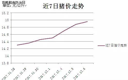 据鸡鸭鹅病防治监测,2017年12月7日全国外三元生猪均价为15元/公斤,较昨日上涨0.05元/公斤;仔猪均价为31.05元/公斤,较昨日下跌0.03元/公斤;今日白条肉均价20.8元/公斤,较昨日上涨0.05元/公斤。今日猪料比价为5.68:1,较昨日增加0.02;猪粮比8.96:1,较昨日增加0.03。