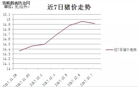 据鸡鸭鹅病防治监测,2017年12月8日全国瘦肉型猪出栏均价7.46元/斤,较昨日下跌0.02元/斤,较去年同期8.55元/斤下跌1.09元。各省均价(元/斤):黑龙江7.3、吉林7.4、辽宁7.5、河北7.4、天津7.4、北京7.5、山西7.5、山东7.5、安徽7.6、江苏7.5、上海7.9、福建7.5、广东7.5、海南7.3、河南7.6、江西7.6、湖北7.7、湖南7.6、陕西7.2、甘肃7.3、四川8.0、云南7.6。