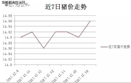 据鸡鸭鹅病防治监测,2017年12月19日全国外三元生猪均价为15.1元/公斤,较上昨天持平;仔猪均价为30.68元/公斤,较上昨天下降0.08元/公斤;今日白条肉均价21.04元/公斤,较上昨天持平。今日猪料比价为5.63:1,较上昨天减少0.03;猪粮比8.86:1,较上昨天减少0.07。