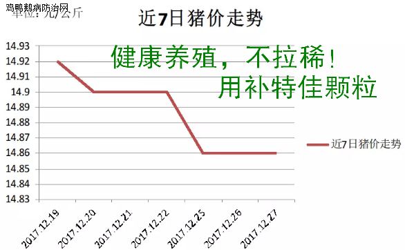 据鸡鸭鹅病防治监测,2017年12月28日全国外三元生猪均价为15.06元/公斤,较昨日下跌0.01元/公斤;仔猪均价为30.57元/公斤,较昨日持平;今日白条肉均价21.03元/公斤,较昨日下降0.01元/公斤。今日猪料比价为5.62:1,较昨日持平;猪粮比8.78:1,较昨日减少0.01。